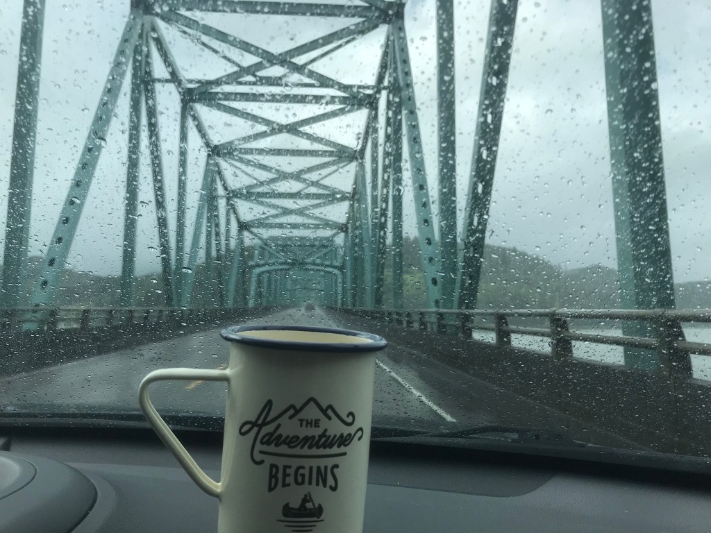 Driving across the Astoria Megler Bridge over the Columbia River to Washington State